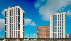 Дом строится этапами - всего в здании будет 9 подъездных секций в 9 и 17 этажей.