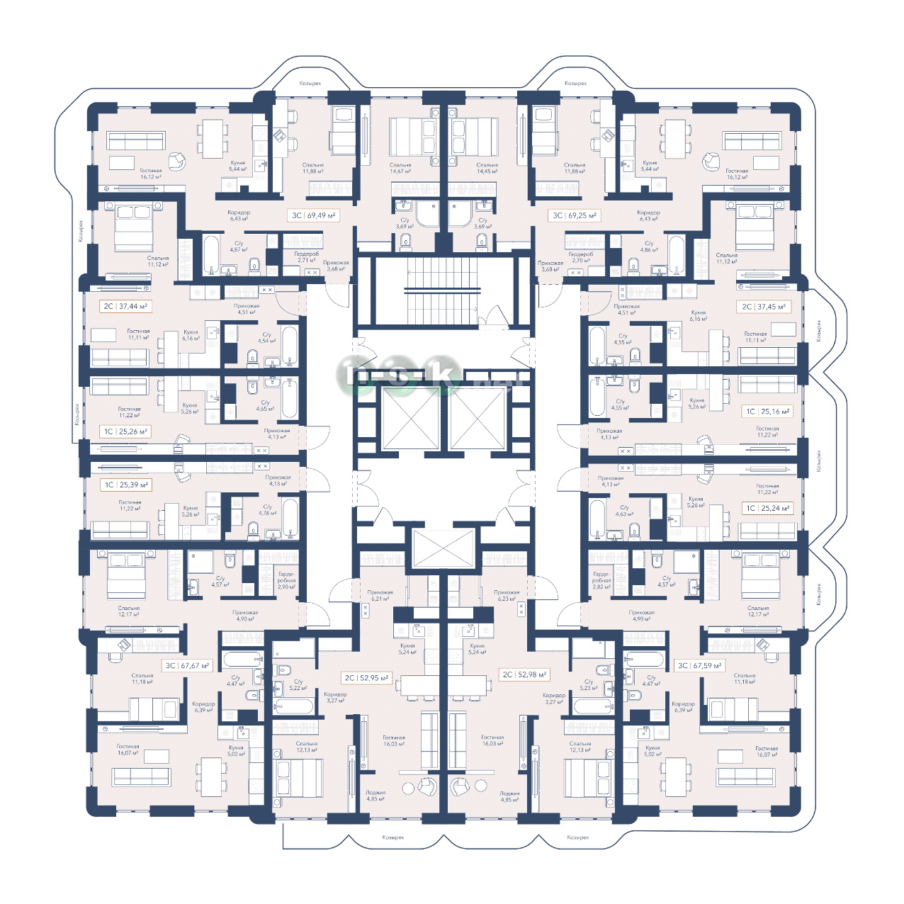 Комфорт-класс 11 квартир на этаже в среднем Без отделки + Под ключ Высота потолка 2,74 - 3,04 м