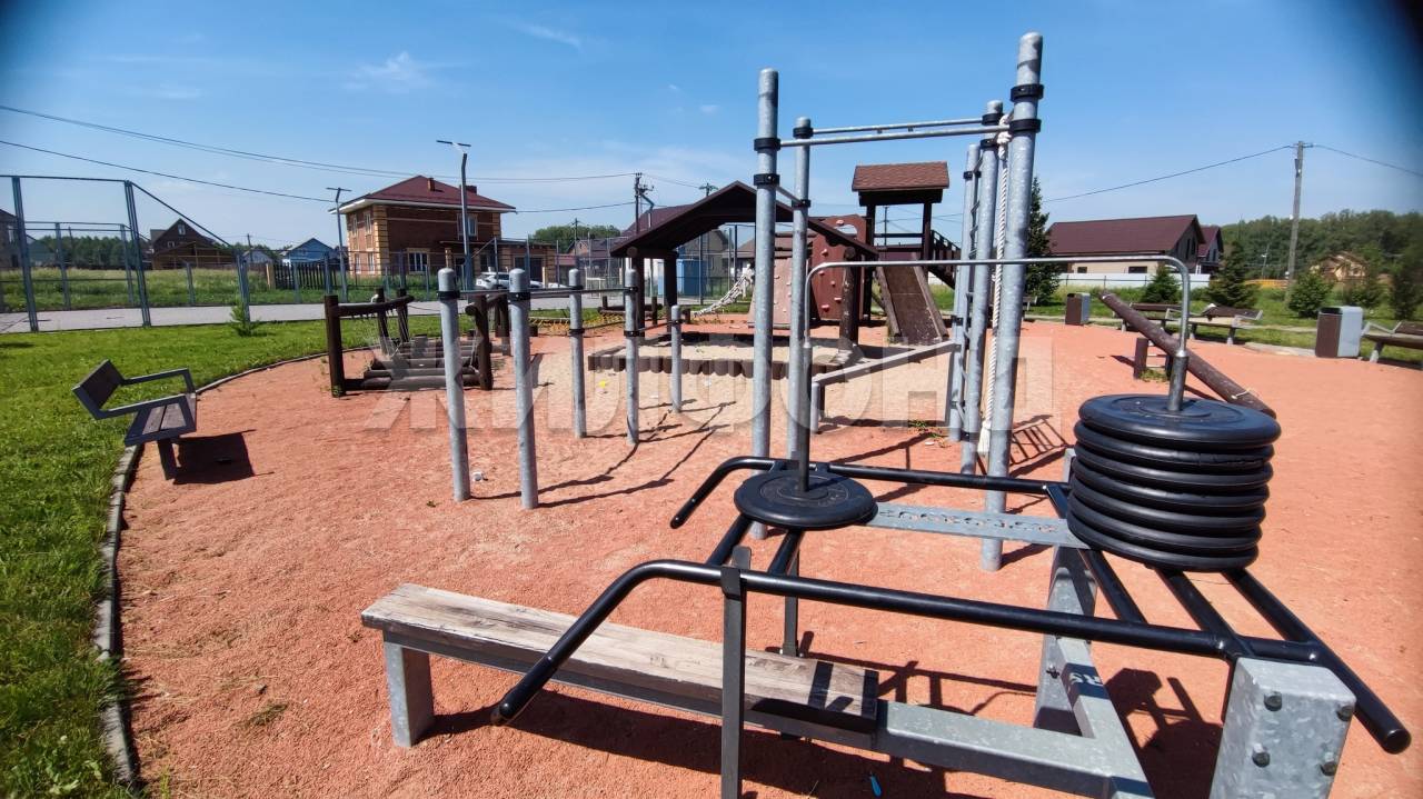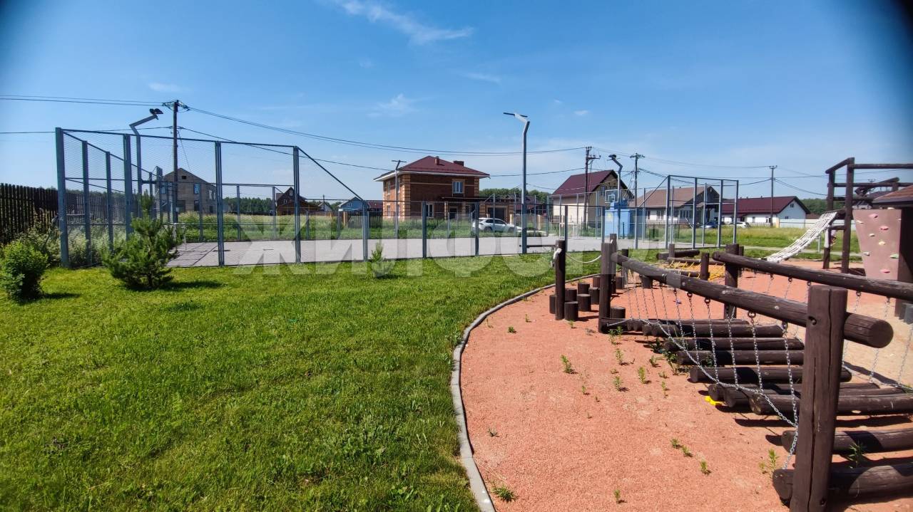 -большая ДЕТСКАЯ (находится в 200 м от участка) и ИГРОВАЯ площадка с футбольным полем,которое зимой превращается в каток